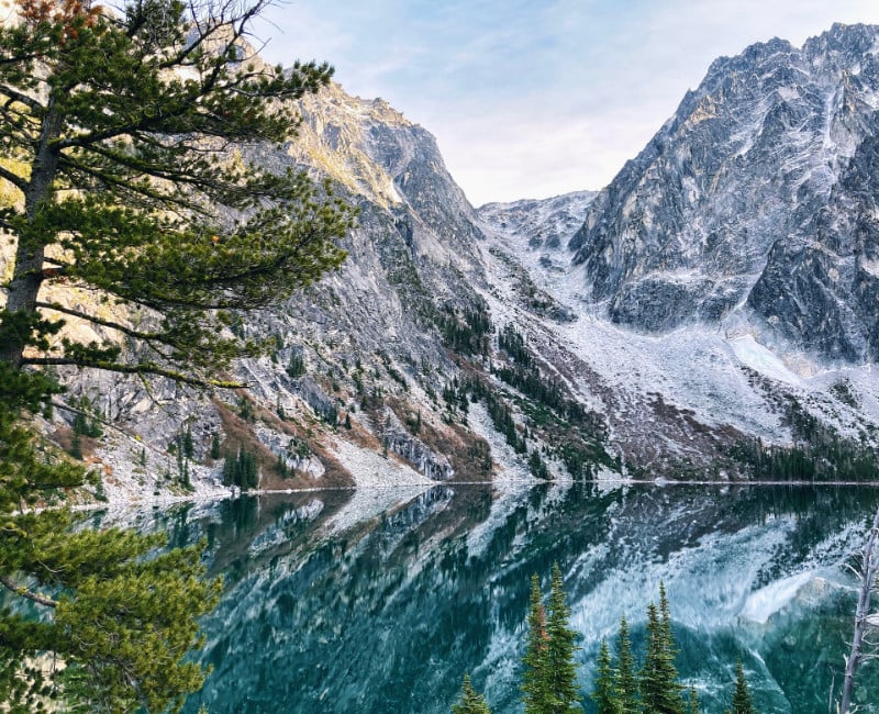 Upon first seeing Colchuck Lake, you may think you’ve been whisked away to the Swiss Alps. In reality, though, this stunning destination is well within Central Washington and is barely 15 miles away from Leavenworth. It truly lives up to its name, however, thanks to its snow-capped peaks, cerulean lake water, and towering pine trees. Its steep final ascent and the 2,300-foot elevation mean fewer people come here so it’s less busy than many other spots in the Alpine Lakes Wilderness. Those who wish to camp overnight should secure a permit beforehand, however, as spots are limited.