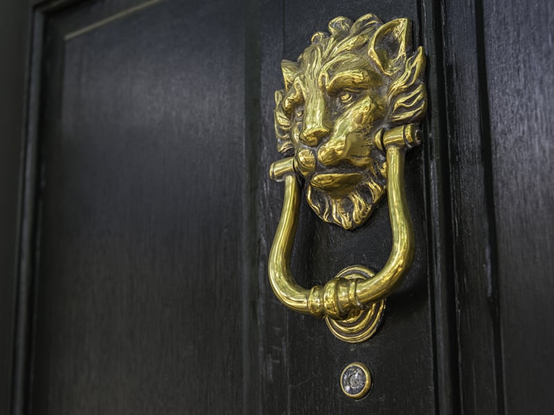 Door knockers are great eye candy that adds character and personality to the entryway. There are several styles to choose from the classic ring design to a lion’s head or even unorthodox designs like pineapples or bumblebees. You can also opt for a monogram to give your door a personalized look.